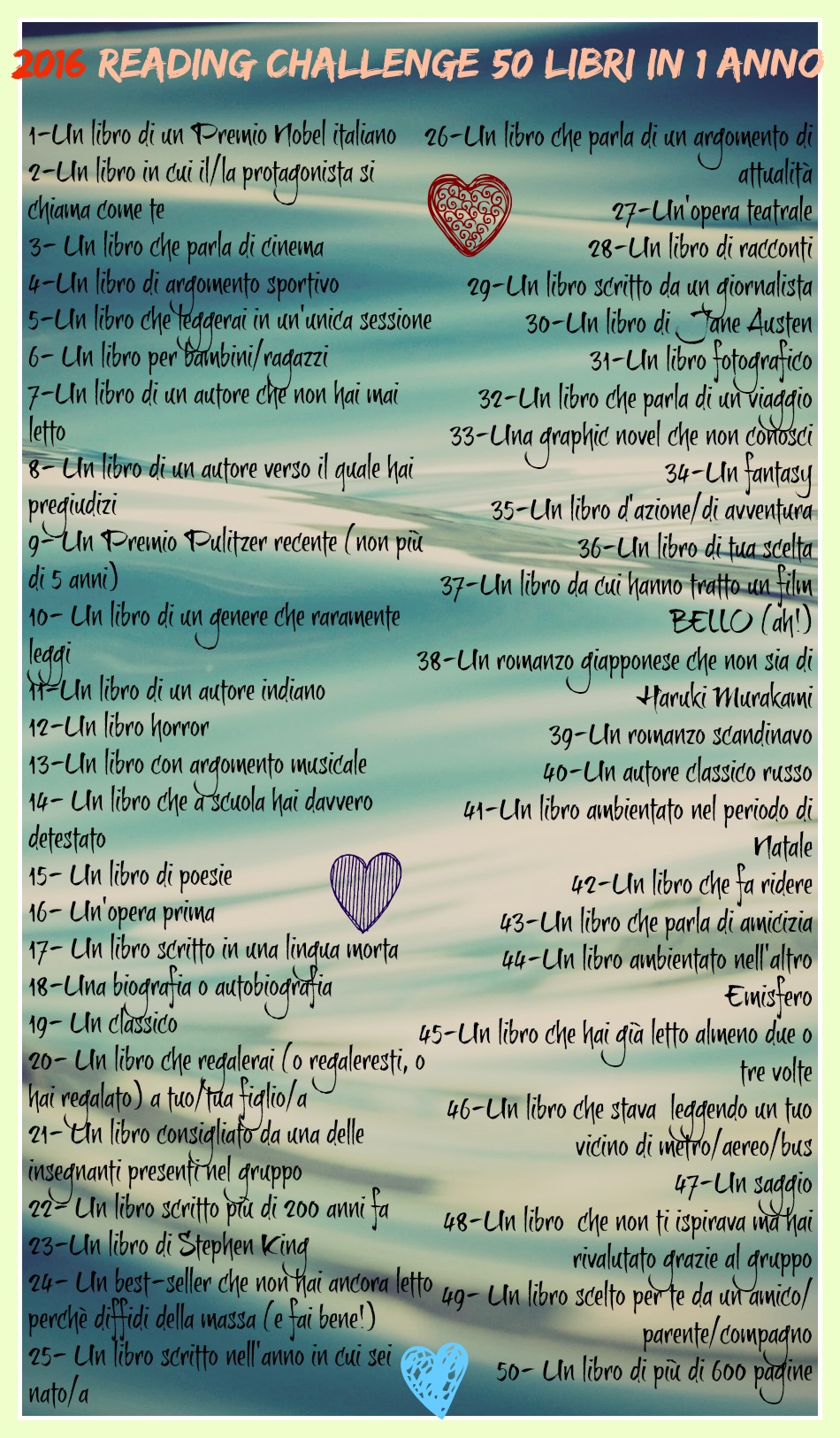 2016 Reading Challenge 50 libri in un anno – giocate con noi! su dicembre 30, 2015dicembre 30, 2015 da LorenzaInquisiziain Bookology, Reading Challenge Condividi: Fai clic per condividere su X (Si apre in una nuova finestra) X Fai clic per condividere su Facebook (Si apre in una nuova finestra) Facebook Mi piace Caricamento... Correlati