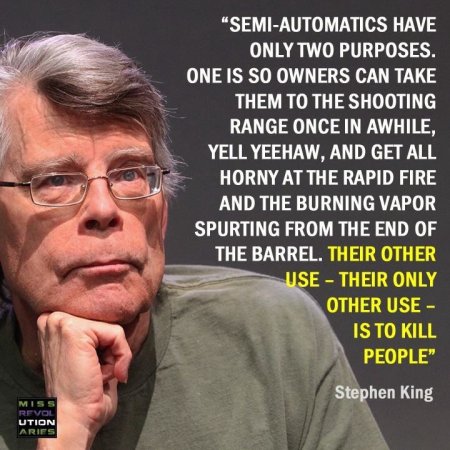 Il passaggio che manca agli Americani, conclude King, è capire che vendere armi così potenti a chiunque e così facilmente forse non istiga, ma sicuramente aiuta.