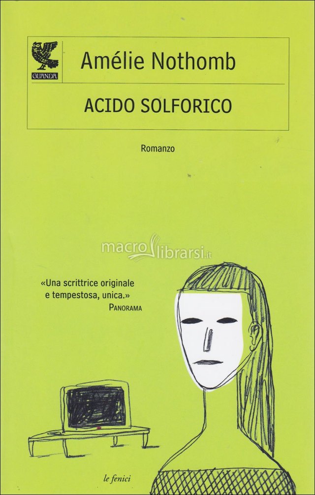 Il vantaggio dei libri di Amélie Nothomb è che sono corti, di semplicità linguistica che li rende scorrevoli, ottimi da leggere tra un mattone e un altro. E’ il quarto libretto suo che leggo, a suo modo è un’autrice che si è costruita uno stile e un marchio di fabbrica e questo me la fa apprezzare. Poi ho sempre la sensazione che in fondo prenda in prestito idee a destra e manca e le semplifichi in una scrittura veloce e accessibile a tutti. Stavolta in Acido Solforico i derubati sono Kafka e Orwell, con un vero campo di concentramento che è in realtà un reality per la televisione, solo che la gente muore veramente. Tante questioni etiche messe in gioco in questo massacro: dalla spersonalizzazione dell’essere umano alla spettacolarizzazione dell’omicidio al televoto; però troppe e troppo grandi, non ne viene fuori poi molto di armonico e coerente. Comunque apprezzabile allegoria della follia dei nostri tempi, anche se le pagine di riflessione sull’argomento sono alla fine le più povere, mentre efficaci sono le descrizioni delle dinamiche tra una giovane kapò innamorata della propria vittima. Discreto insomma, senza pretendere che possa essere un grande libro 7