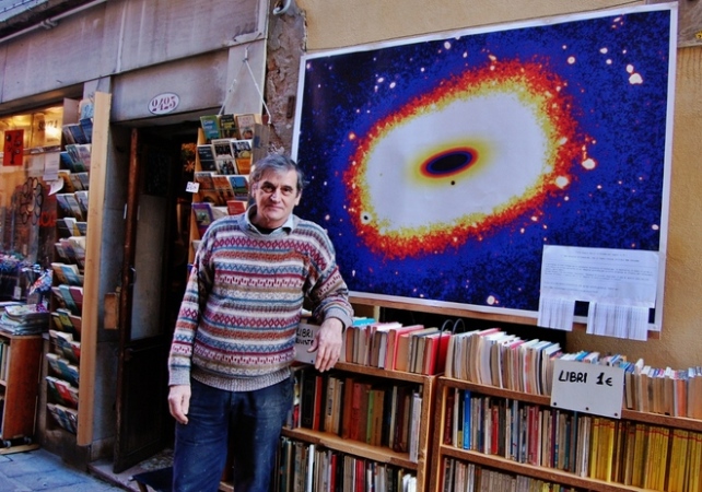 Da lì, proseguendo verso Rio Marin e subito dopo la celebre Scuola Grande (sempre San Giovanni Evangelista) mi sono trovato davanti alla bottega di Luciano Buggio: opere d’arte da oggetti di riciclo e, soprattutto, mobili stracolmi di libri usati , sia all’interno che in calle.