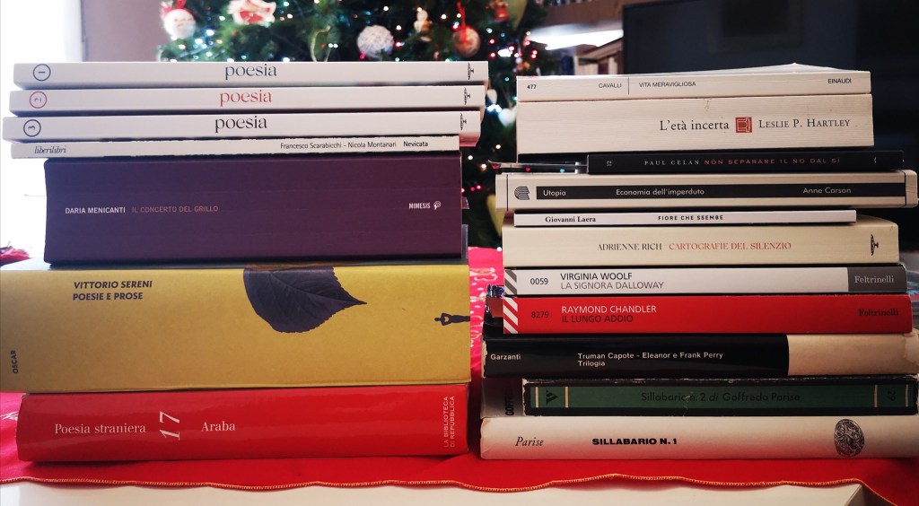 I miei libri dell’anno, non tutti quelli letti, che comunque non sono molti di più. E’ solo un catalogo di ringraziamenti, è un elenco di libri per i quali esprimo gratitudine. In questo anno che passa ho letto meno del solito, ma forse mai come quest’anno ho trovato conforto e trovato gioia leggendo, andando in libreria, scorrendo lo sguardo su costole e copertine, ascoltando e parlando di libri, comprandone (ché ci sta pure quello, si chiama smania di possesso).
