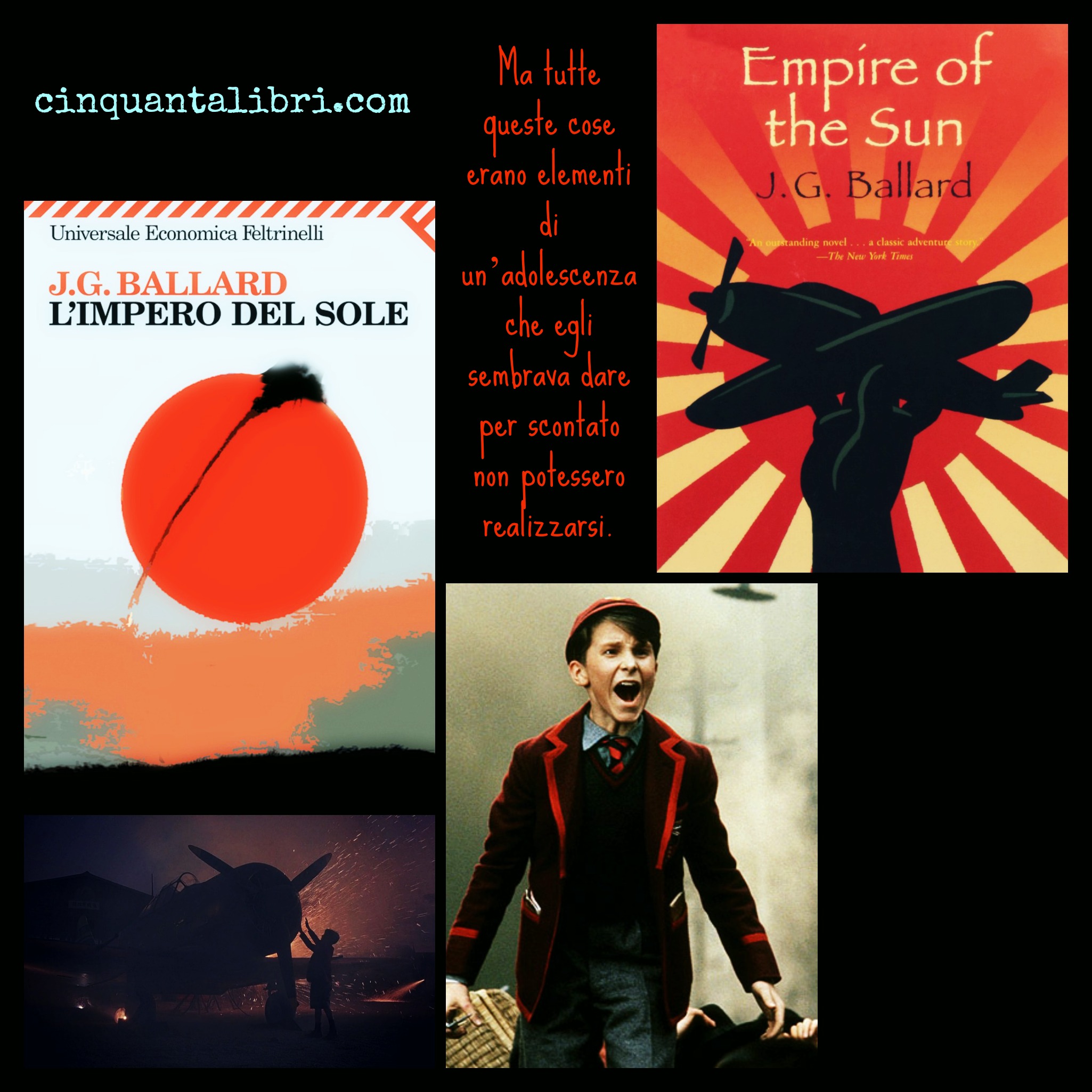 L’impero del sole è un libro che parla di tutto questo: racconta la storia di Jamie, un ragazzo undicenne che, separato dai genitori all’inizio del conflitto a Shangai, passerà da solo gli anni successivi fino alla fine della Guerra, prima vagabondo, poi, catturato dai giapponesi, prigioniero nel campo di concentramento, come Ballard.