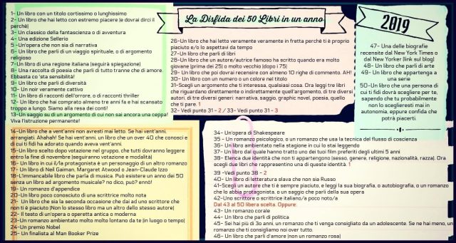 50- Un libro che una persona di cui ti fidi dovrà scegliere per te, sapendo che tu probabilmente non lo sceglieresti mai in autonomia, eppure confida che potrà piacerti.