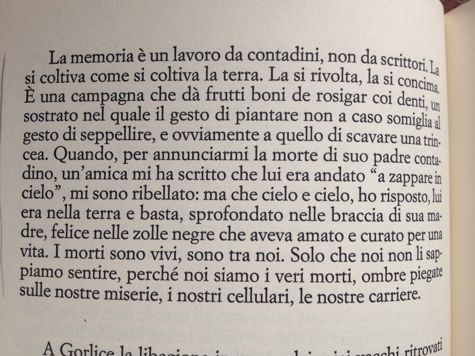 “Anche se è aprile, a tarda notte l’aria sa ancora di neve. Ma i larici stanno iniziando a svegliarsi, la resina risale dalle profondità oscure dei tronchi, e la sua essenza oleosa comincia a diffondersi nell’aria. Aspiro profondamente. In notti d’insonnia come questa, mi ricordo che fortuna sia vivere in un posto che odora di buono.”