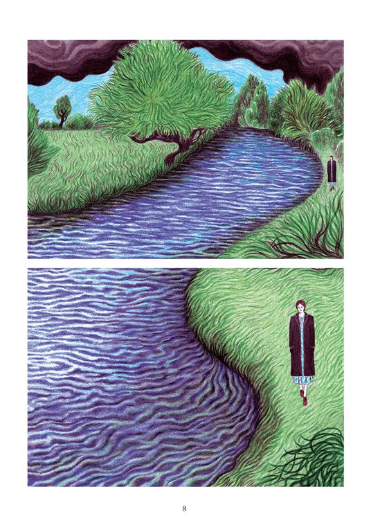 Arrivata all’ultima pagina ho pensato che le sarebbe piaciuto. C’è molto sentimento, molta emozione in questi disegni che ci raccontano i momenti essenziali della tormentata vita di Virginia Woolf, resi più evidenti dai colore, alternativamente sgargianti o cupi, e che già visivamente regalano impressioni molto forti. Per chi conosce Virginia Woolf, questa graphic novel è un gran regalo. Per chi invece, non la conoscesse, qualcuno ci sarà, potrebbe essere di stimolo a conoscerla, sia come biografia, anche perché molto è solo accennato, ma soprattutto attraverso le sue opere.