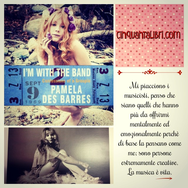 Pamela Miller era un’adolescente californiana carina e biondissima, cresciuta negli anni ’60 in una normalissima casa medio-borghese vicino a Los Angeles, figlia unica di due genitori che le volevano bene e la viziavano il giusto; tutto la dirigeva verso la tipicità della vita medio-borghese che attendeva lei e tutte le sue compagne di classe con cofane e reggiseni imbottiti. Invece, complice una mega prima super cotta per i Beatles, qualcosa durante quel percorso si è inceppato, e lei è diventata Pamela Des Barres, una delle più conosciute groupies di sempre, che ha avuto l’accesso diretto al backstage di tutte le band nella più grande epoca della storia del rock’n’roll. I’m with the band (uscito anche in italiano come Sto con la Band, Castelvecchi Editore) è la sua storia, quella di una ragazza con uno spirito libero e mai meschino, che si è trovata al posto giusto nel momento giusto, o ha fatto di tutto per esserlo, e al di là della dolcissima avventatezza delle sue varie avventure (non necessariamente sessuali), fa piacere vedere che aveva una testa e la usava (anche se non sempre, ma era molto giovane, va ricordato) e che nonostante la superficialità di molte scelte manteneva un’anima profonda e generosa, sempre in cerca di un miglioramento intellettuale e di un reale sviluppo interiore. Non ci sarà sempre riuscita, ma d’altra parte chi siamo noi per giudicarla adesso nel suo percorso? Il libro ripercorre la personale ascesa di Pamela nel mondo del rock a cavallo tra gli anni ’60 e ’70 a fianco di musicisti diventati poi icone (Jim Morrison, Gram Parsons, Jimmy Page, Mick Jagger, Frank Zappa, Keith Moon, citando solo i più famosi). Di alcuni fu solo amica, di altri invece fu ragazza/amante/donna del momento per qualche giorno al mese, per qualche tempo: non troveremo qui le vuote scorribande di una ninfomane assatanata, Miss Pamela si innamorava davvero dei suoi idoli e ricambiava il dono della musica e della loro attenzione con tutto l’amore e la devozione possibili, soffrendo sempre quando inevitabilmente si allontavano verso i loro sogni di gloria rockenrolla lasciandola con il cuore spezzato.
